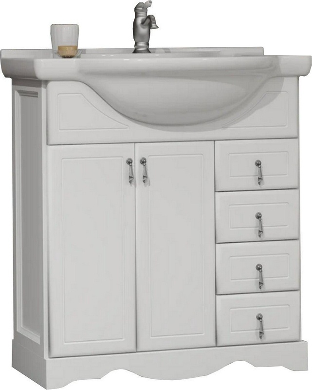 Тумба подвесная Карат 80, 800*595*450 мм, цвет белый/серебряная патина, БЕЗ раковины n126394 Кападокия 80 (ст.рак.Прима 80), крепеж в комплекте ZZ