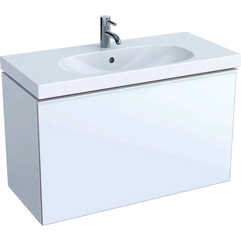 Тумба подвесная 89хh53.5х41,6см, д/рак 90см арт.500.633.01.2,нажим.выдвижн.ящик,(фасад белое стекло, корпус белый глянцевый лак),крепл.в компл,AcantoZ
