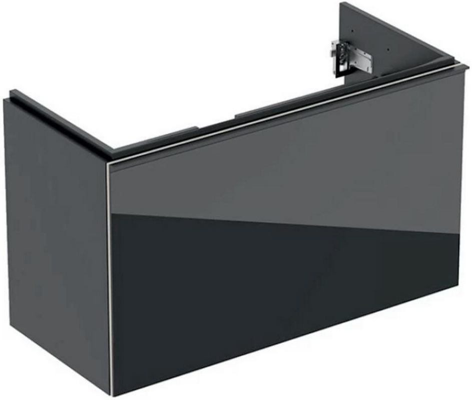 Тумба подвесная 89хh53.5х41,6см, д/рак 90см арт.500.633.01.2,нажим.выдвижн.ящик,(фасад черное стекло, корпус черный мат-лакиров.),крепл.в компл,Acanto