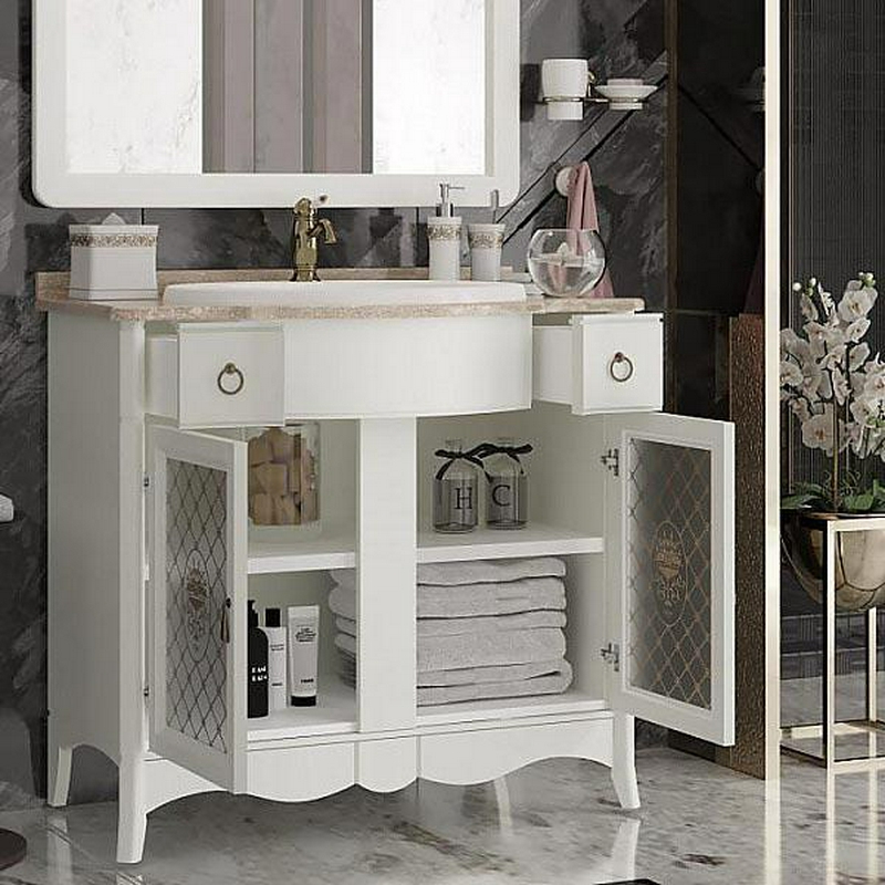 Тумба напольная Виктория 90, 920*850*550 мм, БЕЗ раковины ном. 12882, мраморной плиты, цвет слон. кость ZZ