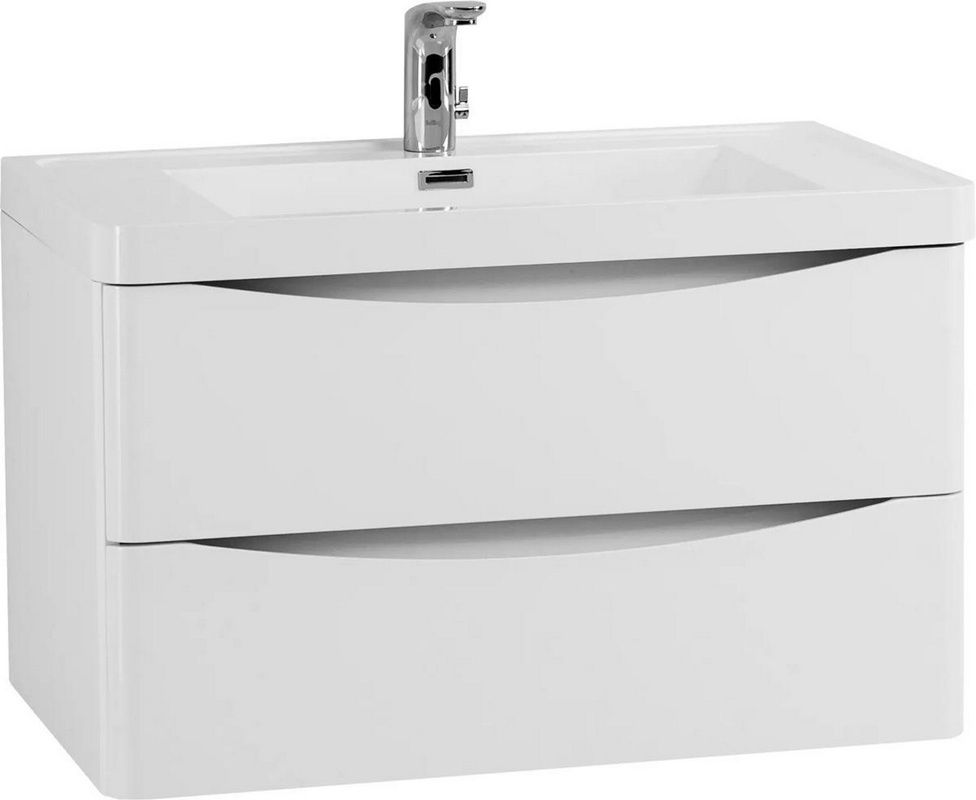 Тумба подвесная 90 см, 2 выдвижных ящика push to open, без раковины, цвет белый матовый/белый глянец