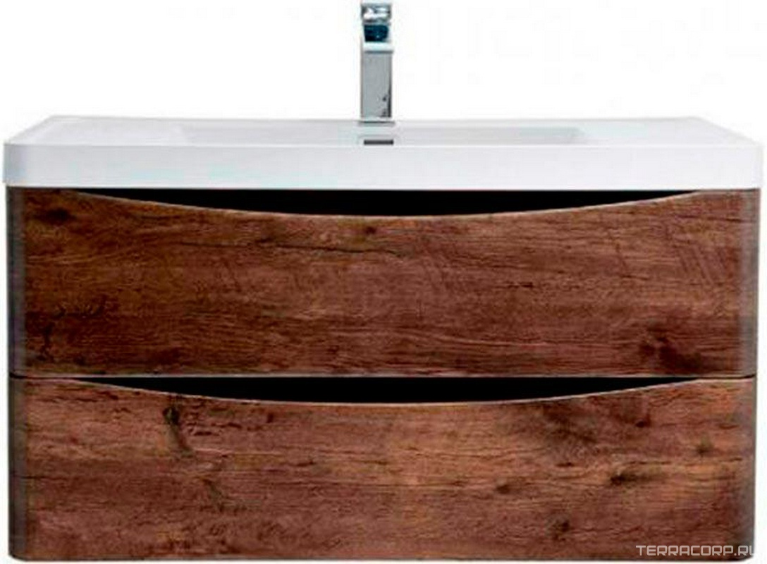 База под раковину подвесная с двумя выкатными ящиками, 1010х460хh515мм, без раковины, (цв.Rovere Tabacco), Kraft