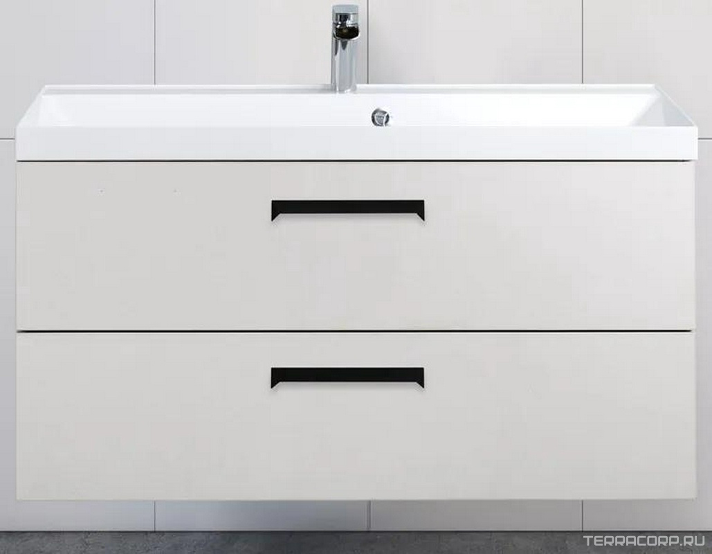Тумба напольная/подвесная "Бостон" - 100 см, цвет белый, 2 выдвижн. ящика, БЕЗ раковины и комплекта ножек
