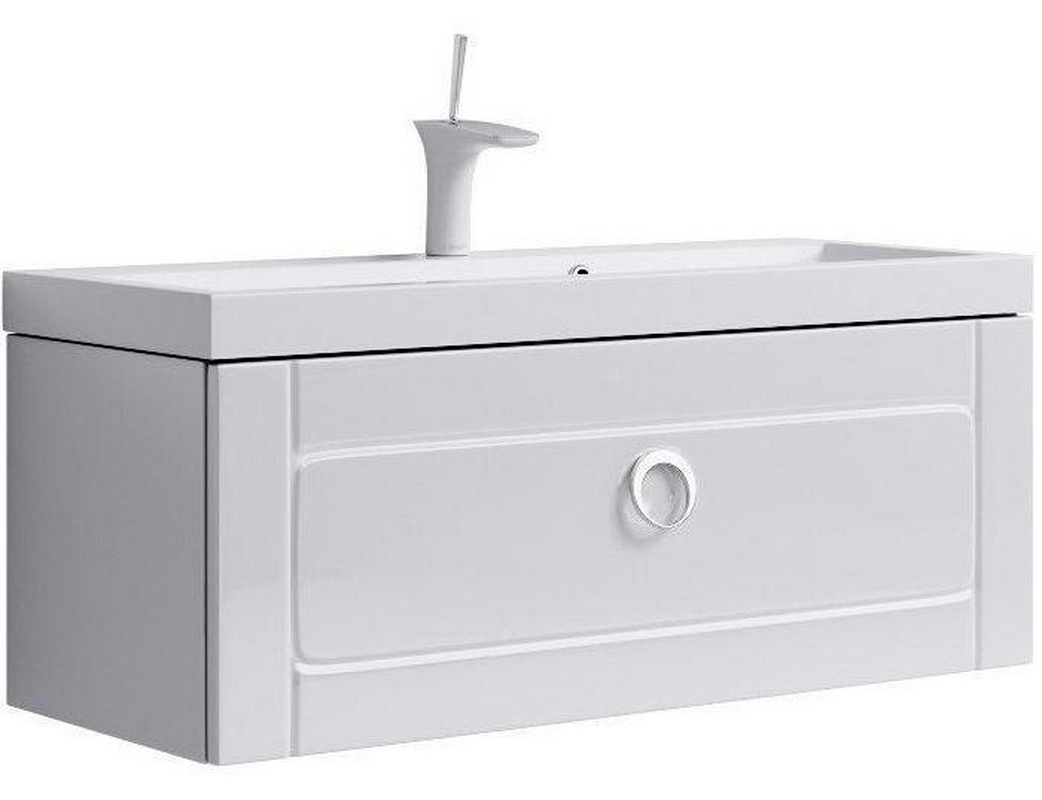 Тумба подвесная 100 см, 1 выдвижной ящик, БЕЗ раковины, цвет белый глянец ZZ