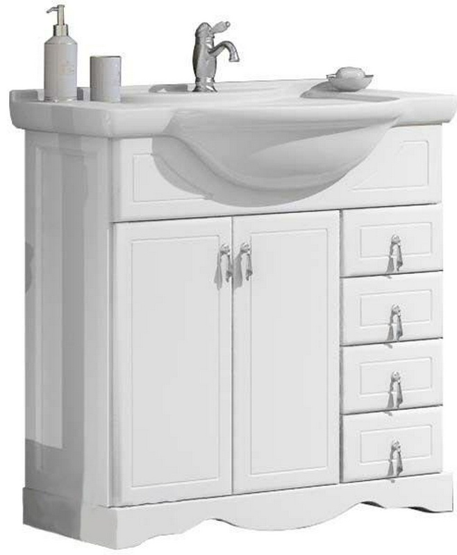 Тумба напольная Клио 80, 870x890x510мм, цвет белый матовый, фурнитура хром, БЕЗ раковины Дрея 85 ZZ