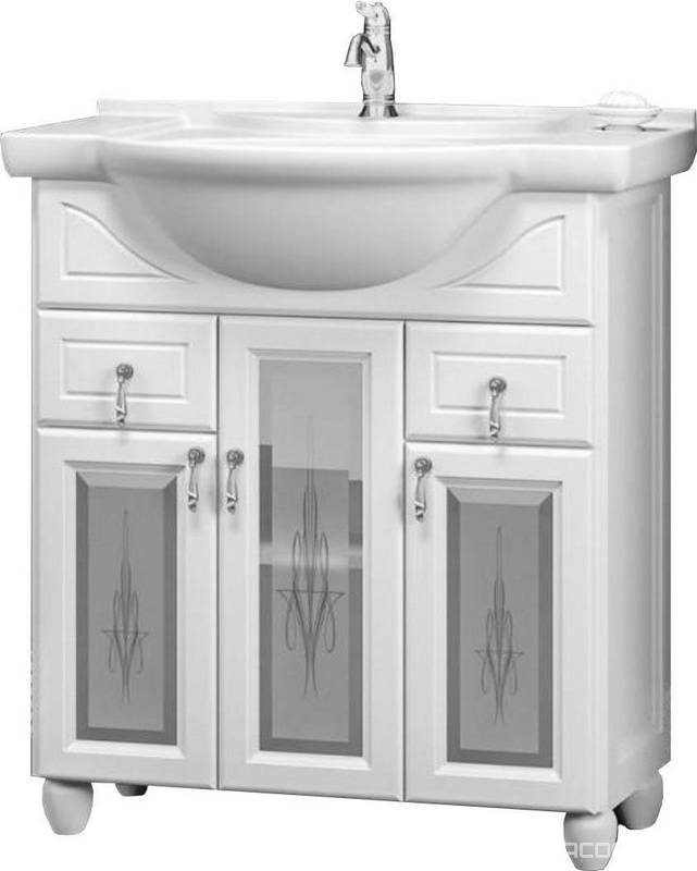Тумба напольная Тибет 80, 870x890x510 мм, фасад худож.стекло, цвет матовый белый, БЕЗ раковины Дрея 85 ZZ