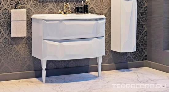 Тумба подвесная Карат 80, 800*595*450 мм, цвет белый/серебряная патина, БЕЗ раковины n126394 Кападокия 80 (ст.рак.Прима 80), крепеж в комплекте ZZ