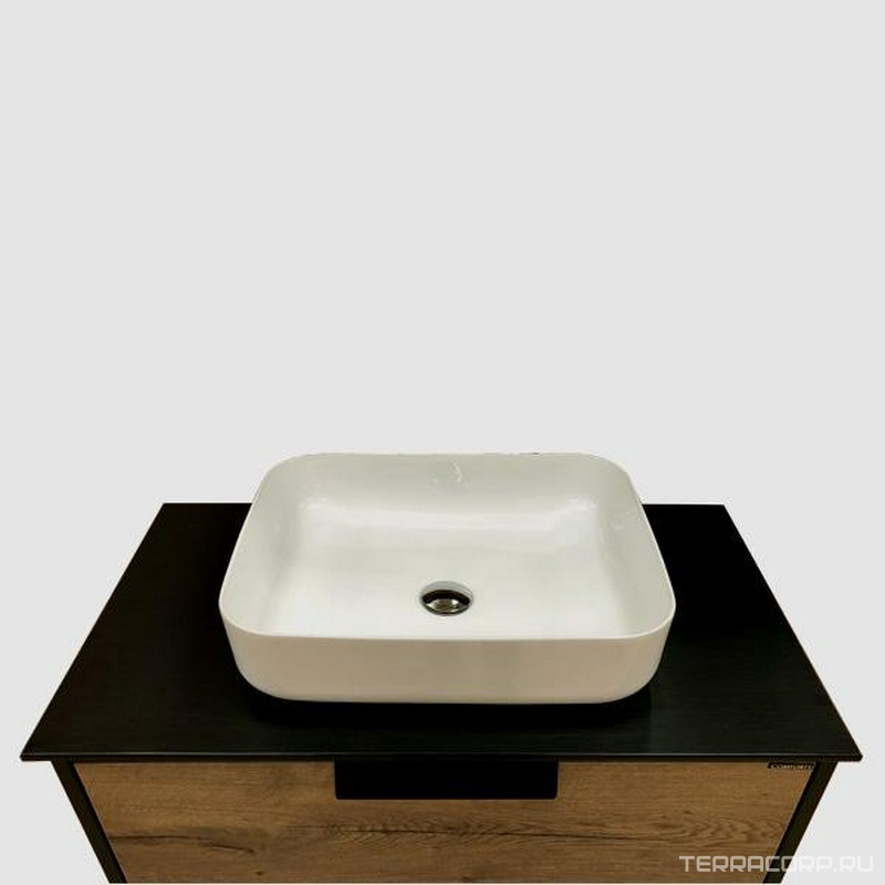 Тумба подвесная "Кёльн-90-1"-90см, с раковиной в комплекте, цв. дуб темный с черной столешницей, ZZ
