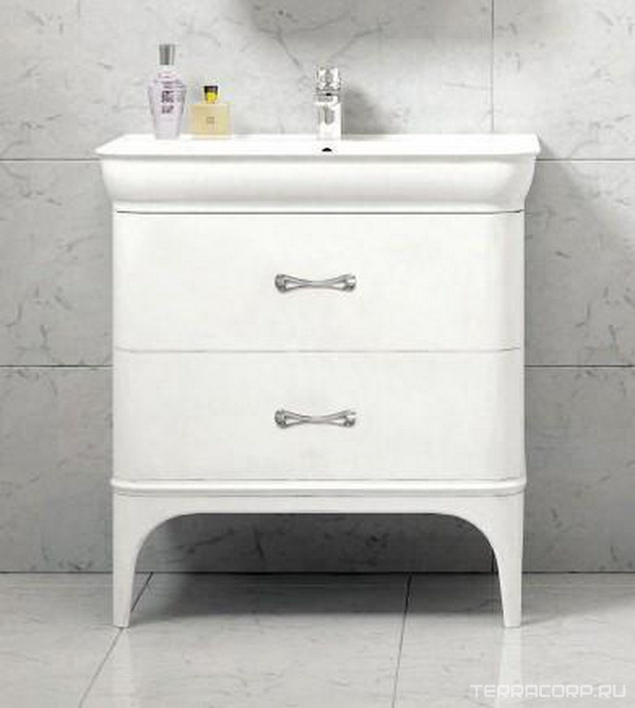 База под раковину 800x480x850мм напольная с двумя выкатными ящиками, цв.белый глянец, ручки цв.хром, ZZ BelBagno Prado PRADO-800-2C-PIA-BL ручки хром