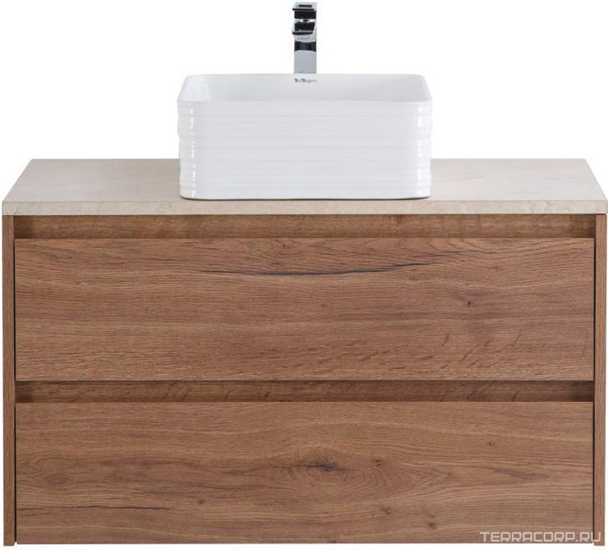 База под раковину подвесная с 2 выкатными ящиками, 964x438x500мм, без раковины, (цв.Rovere Rustico), Marino-Cer ZZ