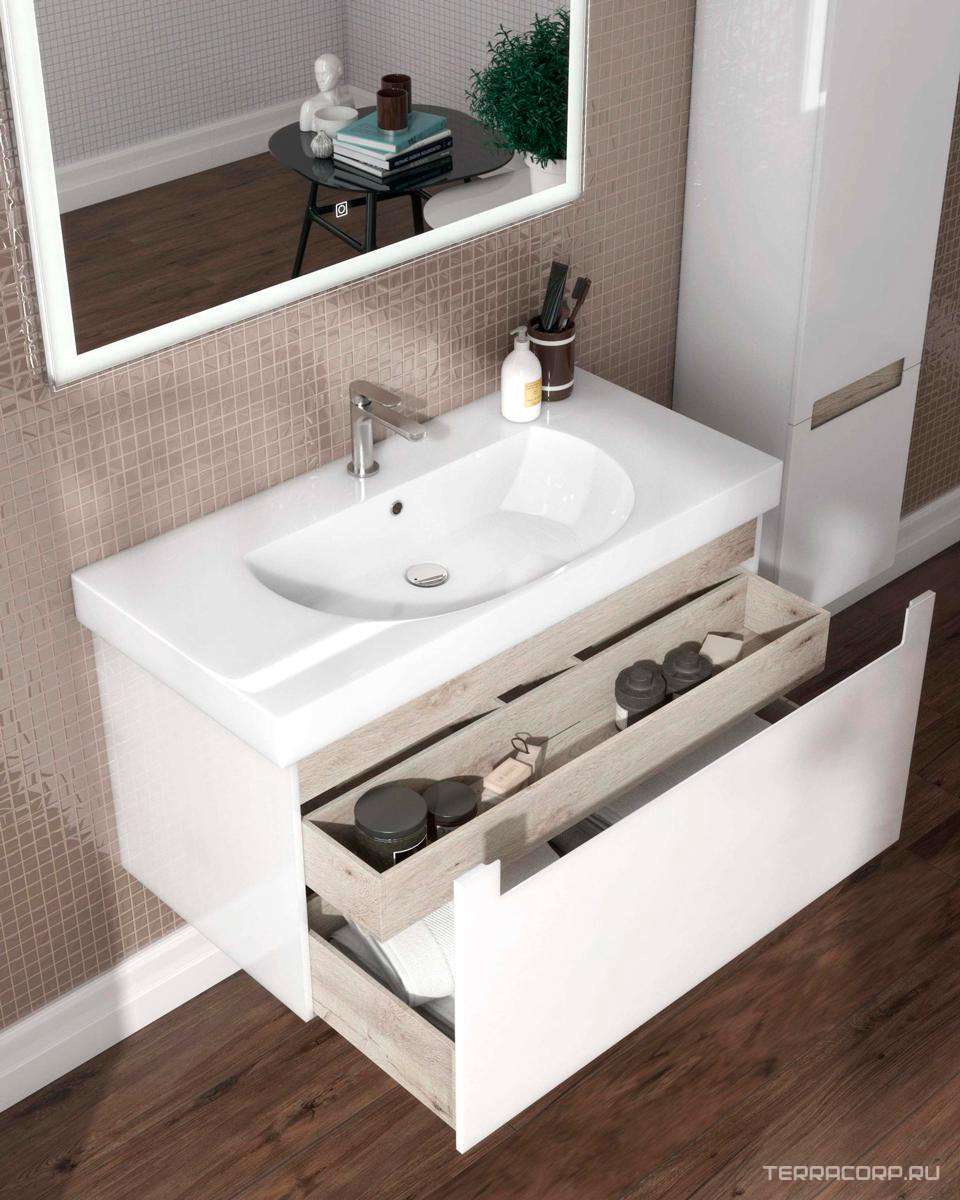 Тумба подвесная "BUONGIORNO" 100 см, с 1 выдвижным ящиком+1 внутренний ящик, БЕЗ раковины, сменная вставка цветов полоски цв.белый/полоска дуб XX