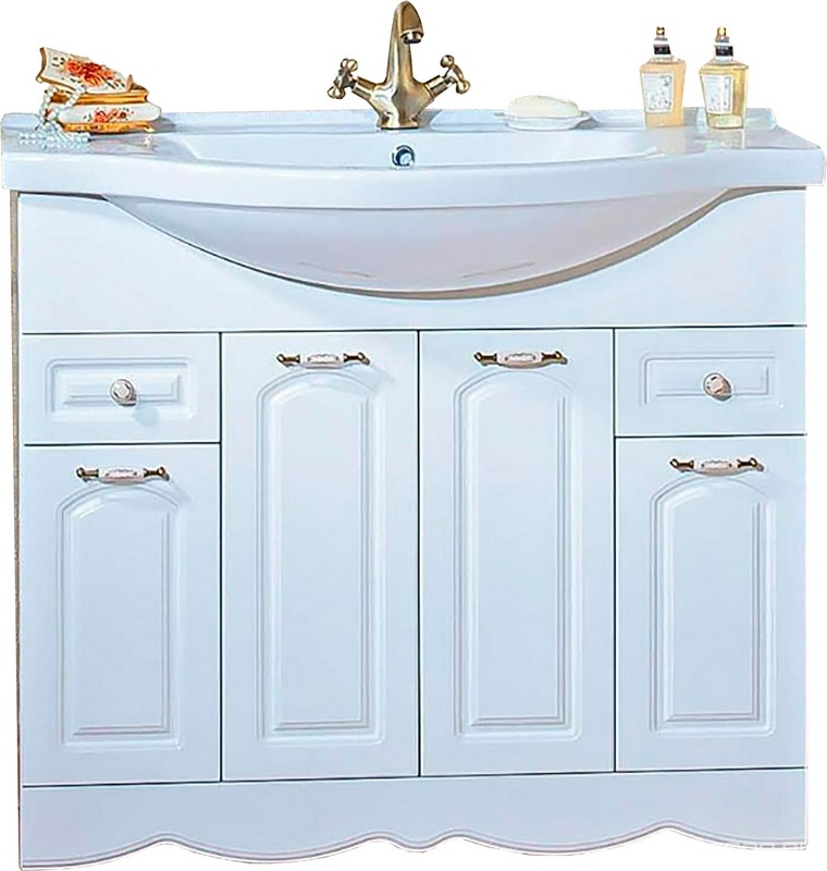Тумба напольная Оникс 100, 1030*855*450 мм, цвет белый/серебро патина, БЕЗ рак. n126396 Кападокия 100 (ст рак.Прима 1000)