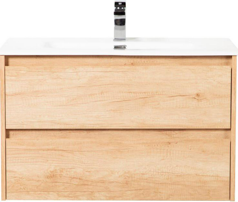 База под раковину подвесная с двумя выкатными ящиками, 810х460х515мм, без раковины, (цв.Rovere Nebrasca Nature), Kraft ZZ