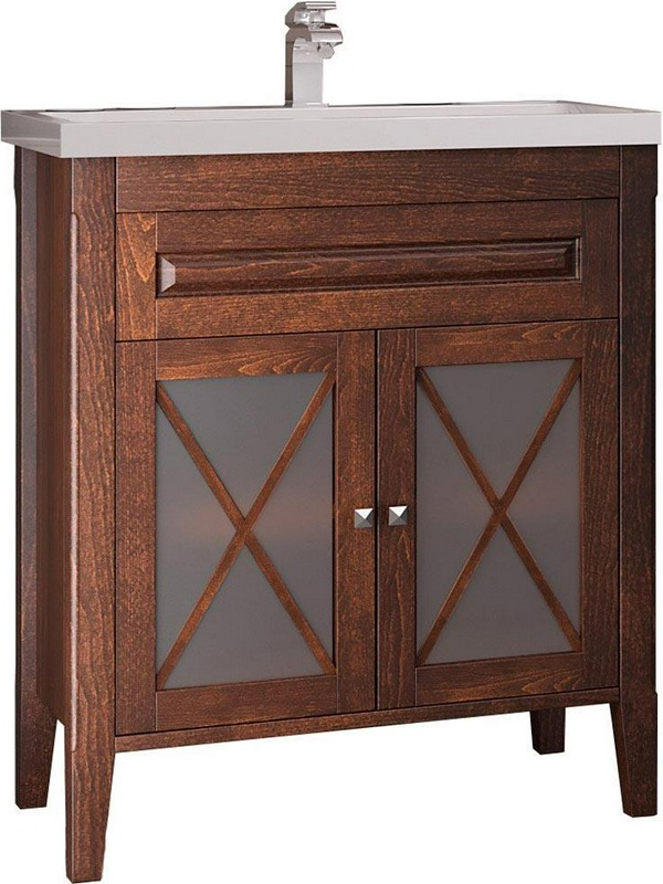 Шкаф под раковину 685хh750х540мм, 2 двери, (цв.орех, ручки-керамика цв.R2 Star white ceramicplus), Hommage ZZ