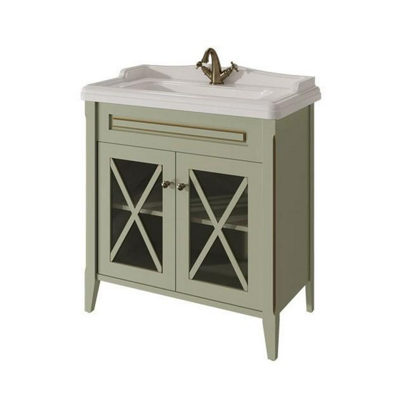 Тумба подвесная Карат 80, 800*595*450 мм, цвет белый/серебряная патина, БЕЗ раковины n126394 Кападокия 80 (ст.рак.Прима 80), крепеж в комплекте ZZ