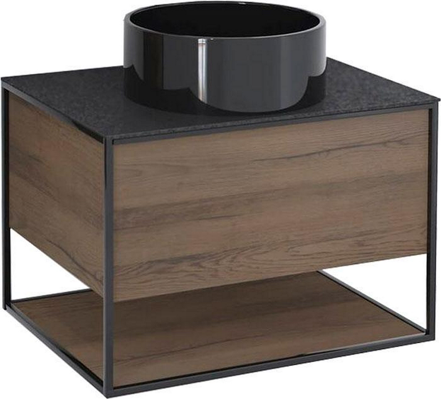 Тумба под раковину подвесная с 1 выдвиж ящиком, столешница пластик, 90х55,5хh54см, без раковины, (цв.дерево/черный матовый), Steal ZZ