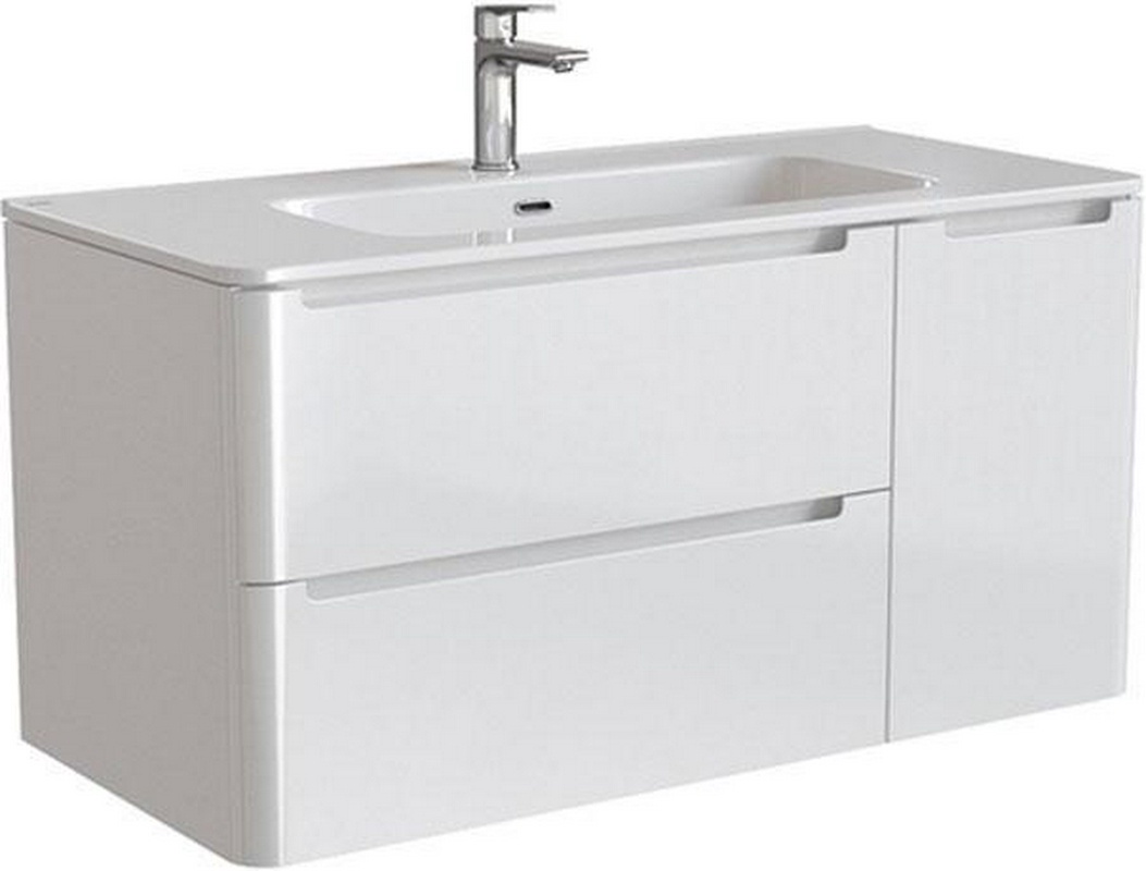 Тумба подвесная "Edifice"-100 см, 2 выдвижн. ящика, 1 расп.дверца, раковина в компл., цвет белый ZZ