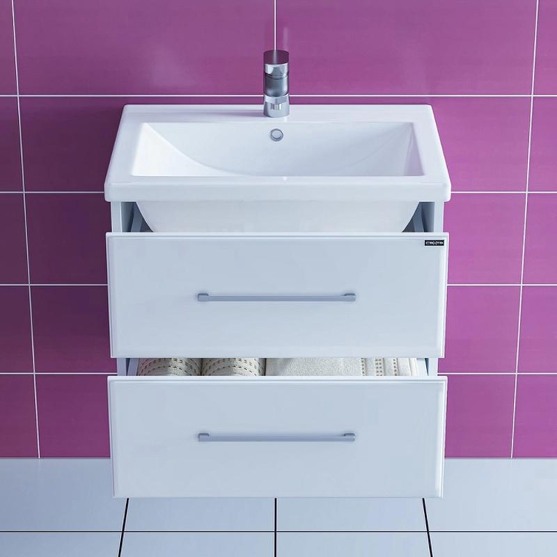 Тумба подвесная СанТа"Омега"-60 см, БЕЗ раковины (Фостер 60), цвет белый ZZ