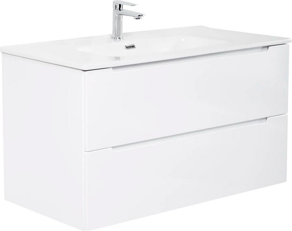Тумба подвесная 90 см, 2 выдвижных ящика push to open, без раковины, цвет белый матовый/белый глянец