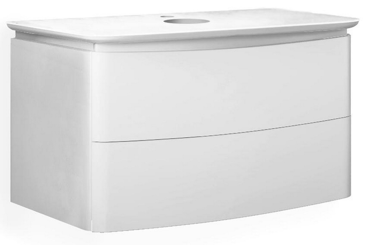 Тумба подвесная PIANO Forte -95 см, с 2 выдвижными ящиками, БЕЗ раковины, цв. белый глянец