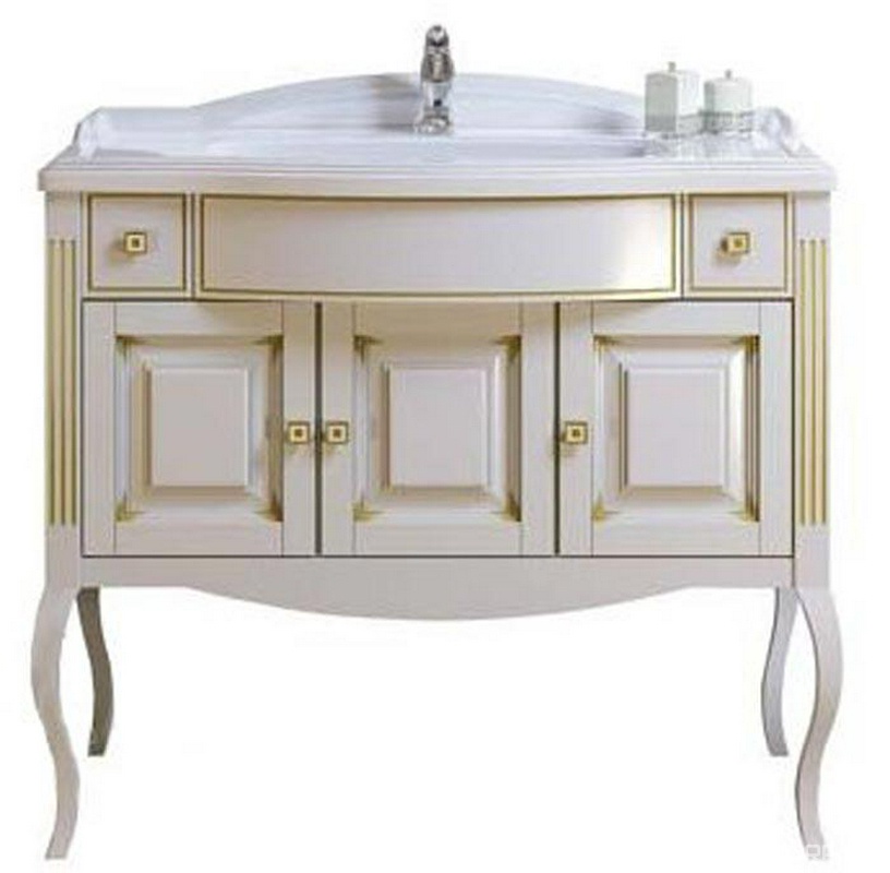 Тумба напольная Лаура 100, 1000*930*540 мм,БЕЗ раковины Лаура 100 (искусств камень), цв. белый матовый с бежевой патиной/swarovski золото, ZZ