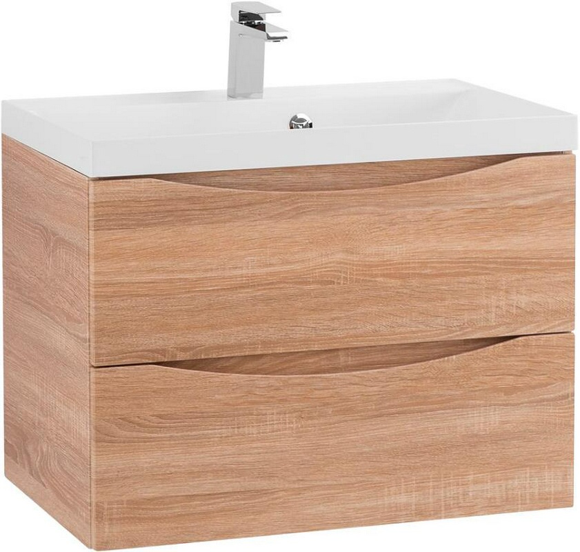 База под раковину подвесная с 2 выкатными ящиками, 750х450хh500мм, без раковины, (цв.Rovere Nature), Marino ZZ