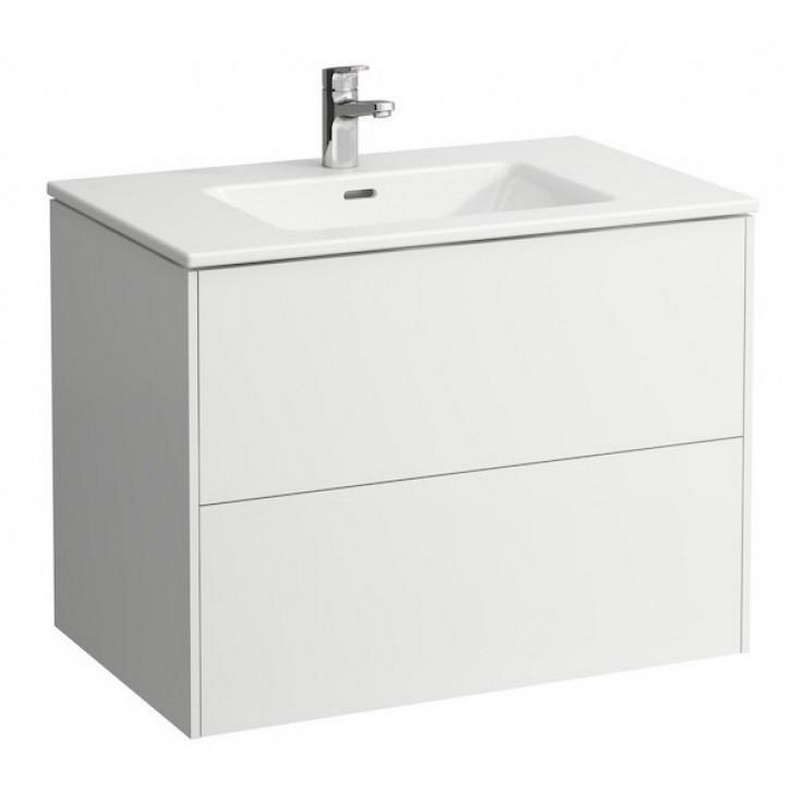 Тумба с раковиной 80х50х61 см, 2 выдв. ящика, органайзер, (цв. белый глянцевый), Base ZZ