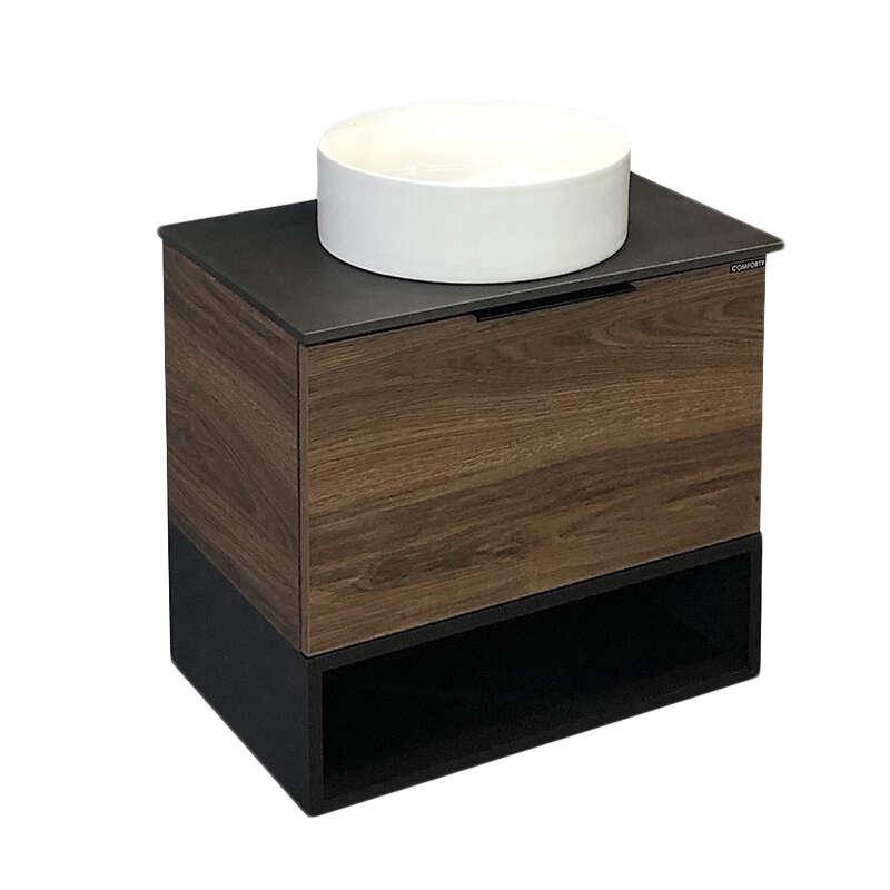 Тумба подвесная "Штутгарт-60", с раковиной, с черной столешницей с отверстием под смеситель в комплекте, дуб тёмно-коричневый, ZZ