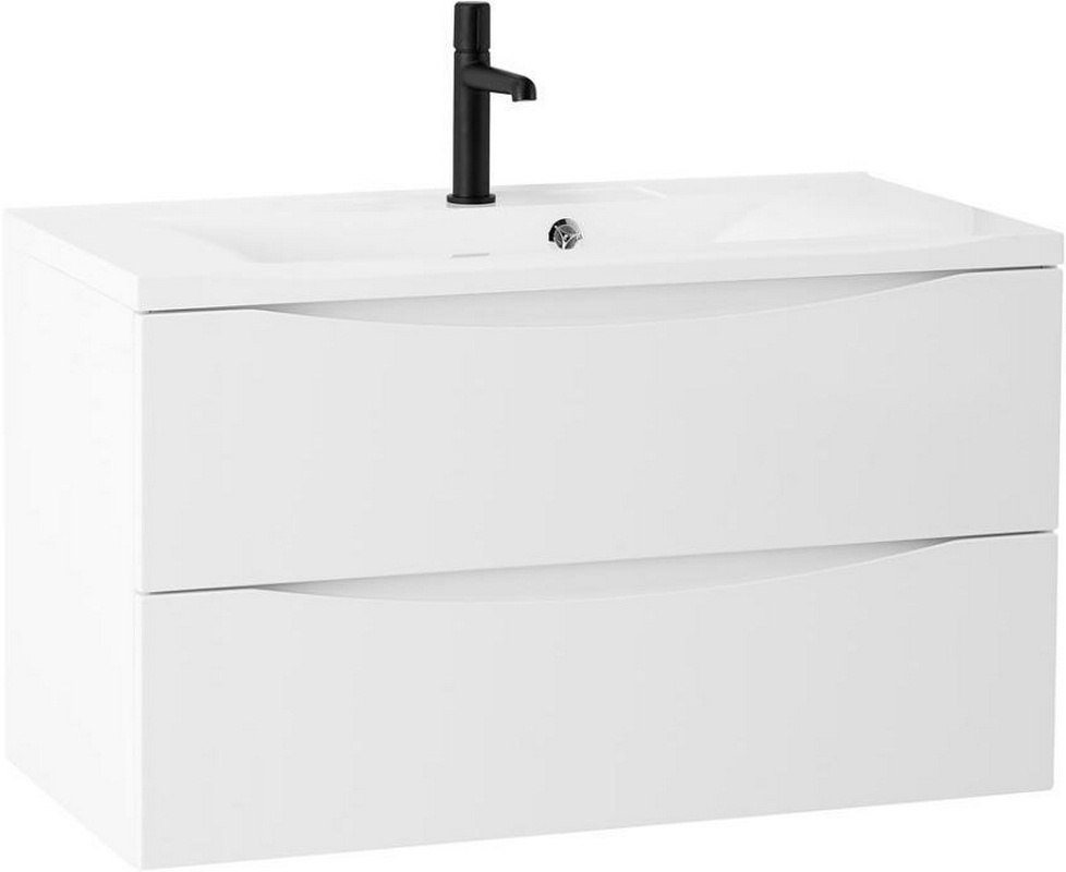 Тумба подвесная 90 см, 2 выдвижных ящика push to open, без раковины, цвет белый матовый/белый глянец