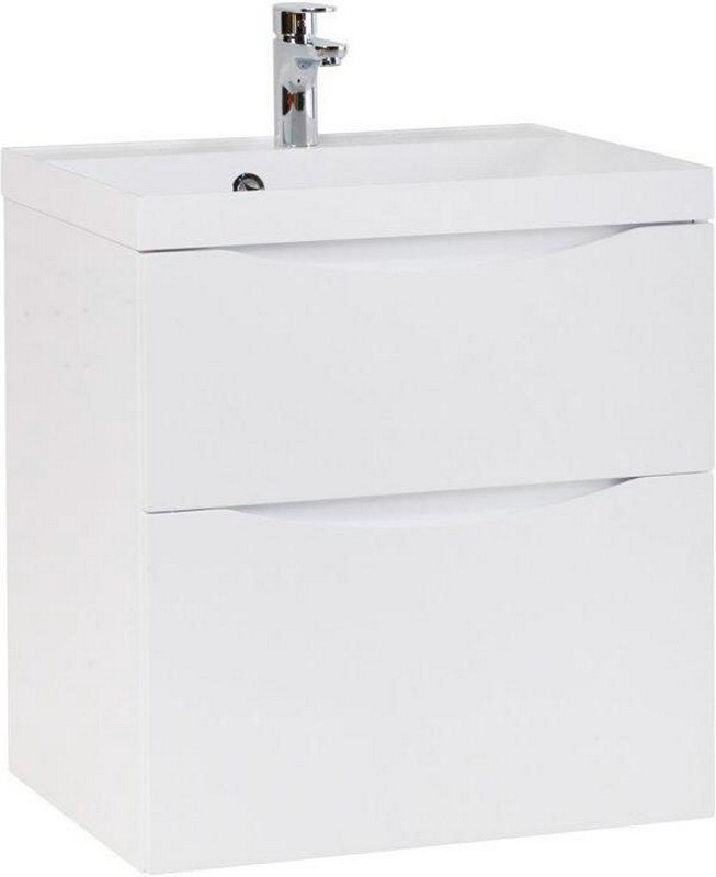 Тумба подвесная под раковину Бруклин 60 белый, 495х436 мм, БЕЗ раковины Sanovit (198206), 2 выдвижный ящика, цв. белый
