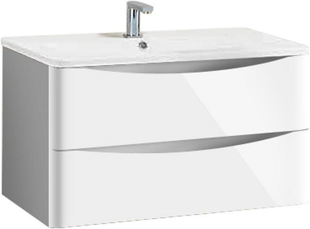 Тумба подвесная PIANO Forte -95 см, с 2 выдвижными ящиками, БЕЗ раковины, цв. белый глянец