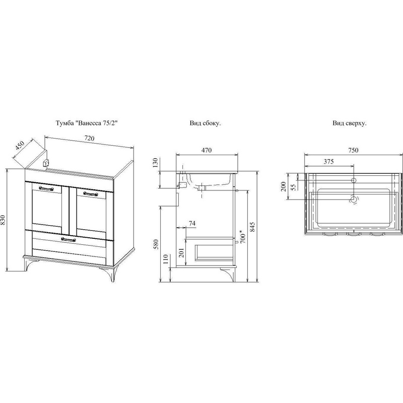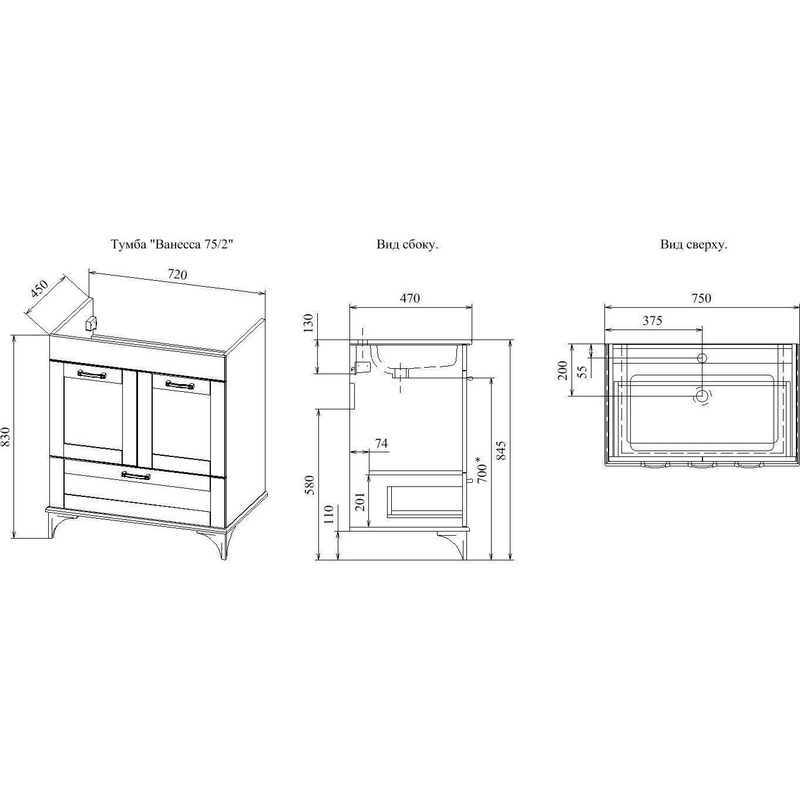 Тумба (подвесная/наполная, ножки/крепления в комплекте) для комплекта Sanflor Ванесса 75, цв.белый, БЕЗ раковины(С0000002381) ZZ