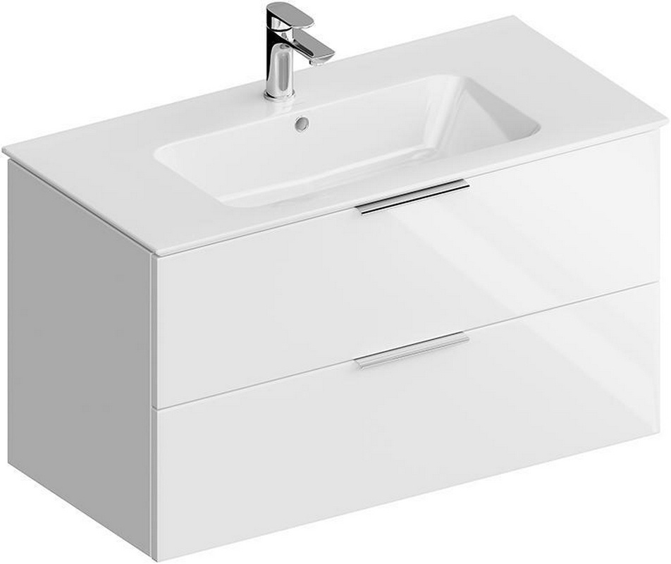 Тумба подвесная PIANO Forte -95 см, с 2 выдвижными ящиками, БЕЗ раковины, цв. белый глянец