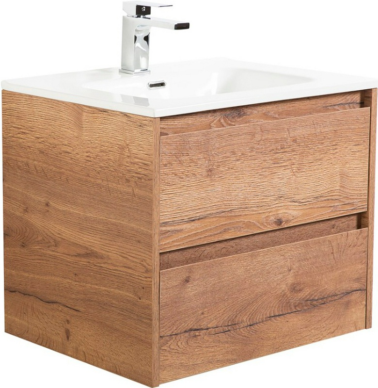 База под раковину подвесная с двумя выкатными ящиками, 610х460х515мм, без раковины, (цв.Rovere Tabacco), ZZ BelBagno Kraft KRAFT-600-2C-SO-RT