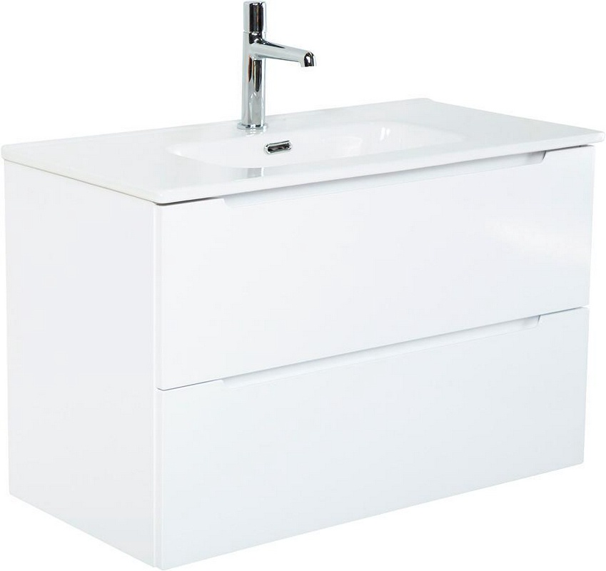 Тумба подвесная 90 см, 2 выдвижных ящика push to open, без раковины, цвет белый матовый/белый глянец
