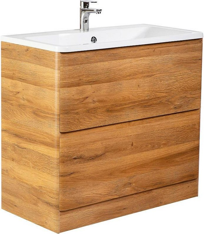 База под раковину напольная с двумя выкатными ящиками, 1000х460хh840мм, без раковины, (цв.Rovere Tabacco), Kraft ZZ
