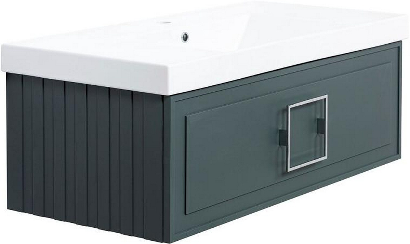 Тумба под раковину, с 1 выкатным ящиком, 976x469хh350мм, без раковины/столешницы, БЕЗ РУЧКИ, (цв.серый матовый), Cubo ZZ