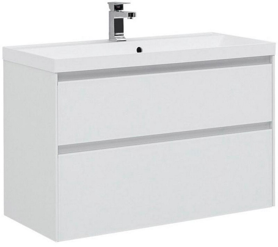Тумба подвесная PIANO Forte -95 см, с 2 выдвижными ящиками, БЕЗ раковины, цв. белый глянец