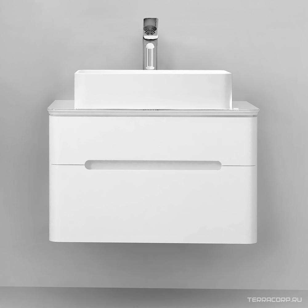 Тумба под раковину подвесная с 2 выдвиж ящиками, столешница стекл., 75х50хh46,5см, без раковины, (цв.белый), Bosko ZZ