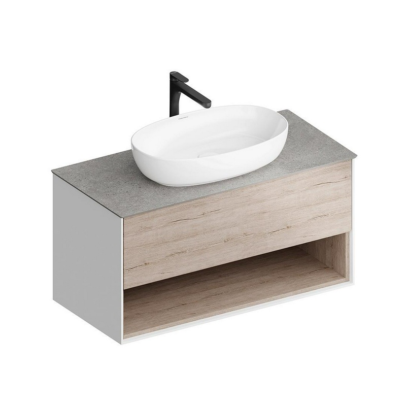 Тумба PLAZA Modern, подвесная 100 см, 1 выдвижной ящик и открытая полка, цв.дуб Орегон XX