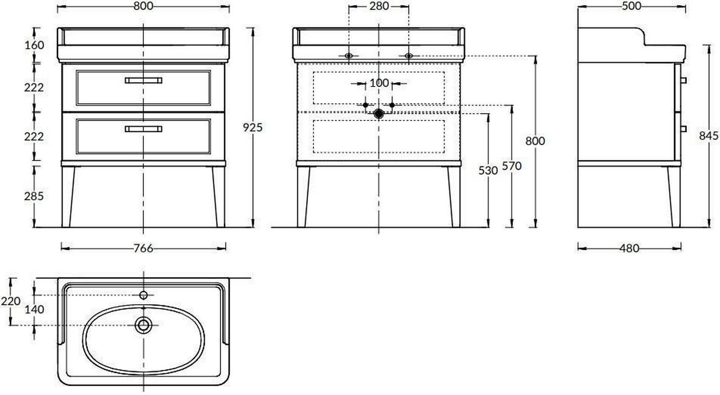 Тумба напольная "Pompei New" 80см, 2 ящика, БЕЗ раковины, цв.белый глянец, ZZ