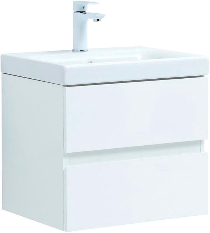 Тумба подвесная под раковину Бруклин 60 белый, 495х436 мм, БЕЗ раковины Sanovit (198206), 2 выдвижный ящика, цв. белый