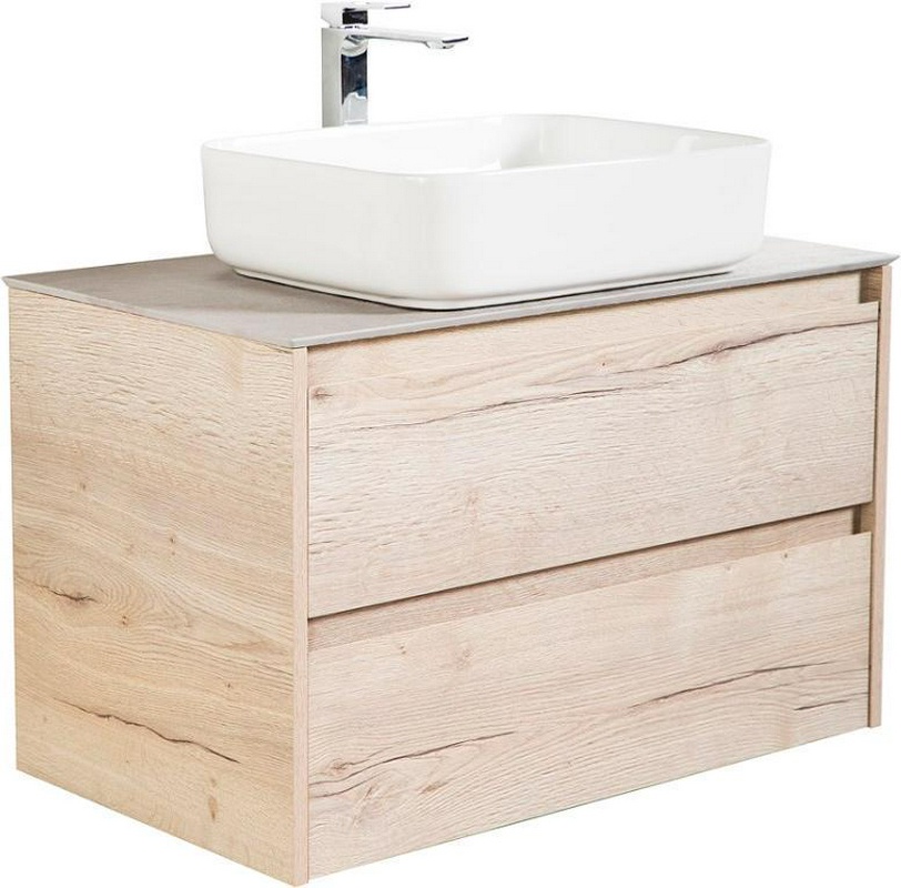 База под раковину подвесная с двумя выкатными ящиками, 800х450хh500мм, без раковины, (цв.Rovere Nature Grigio), Albano ZZ