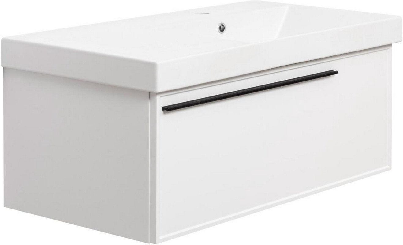 Тумба под раковину, с 1 выкат. ящиком, 876x469xh350мм, без раковины/столешницы, (цв.белый мат., ручка цв.черный), Elba ZZ