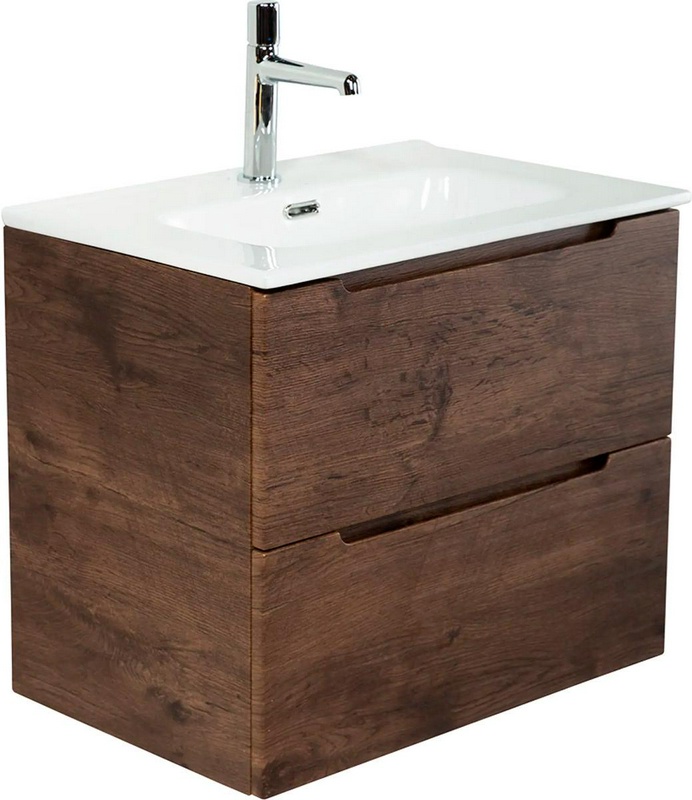 База под раковину подвесная с двумя выкатными ящиками, 700х450мм, без раковины и ручек, (цв.Rovere Tabacco), Aurora ZZ