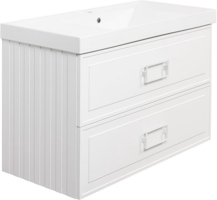 Тумба напольная/подвесная "Бостон" - 100 см, цвет белый, 2 выдвижн. ящика, БЕЗ раковины и комплекта ножек