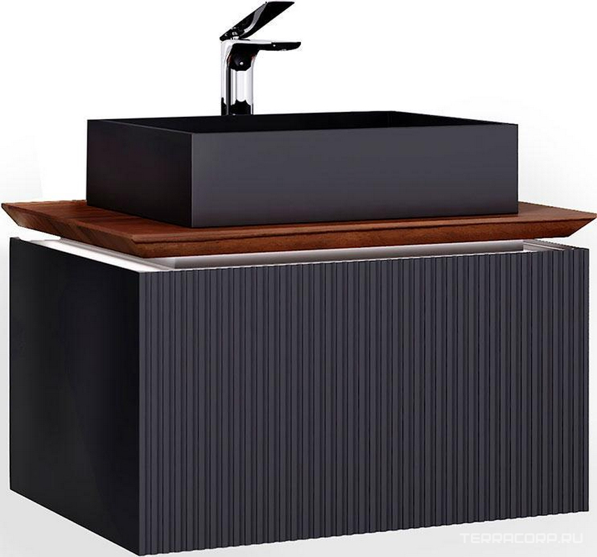 Тумба под раковину подвесная с 1 выдвиж. ящиком, с подсветкой, 80х54хh33см, без раковины, (столешница массив бука, корпус цв.антрацит), Strong ZZ
