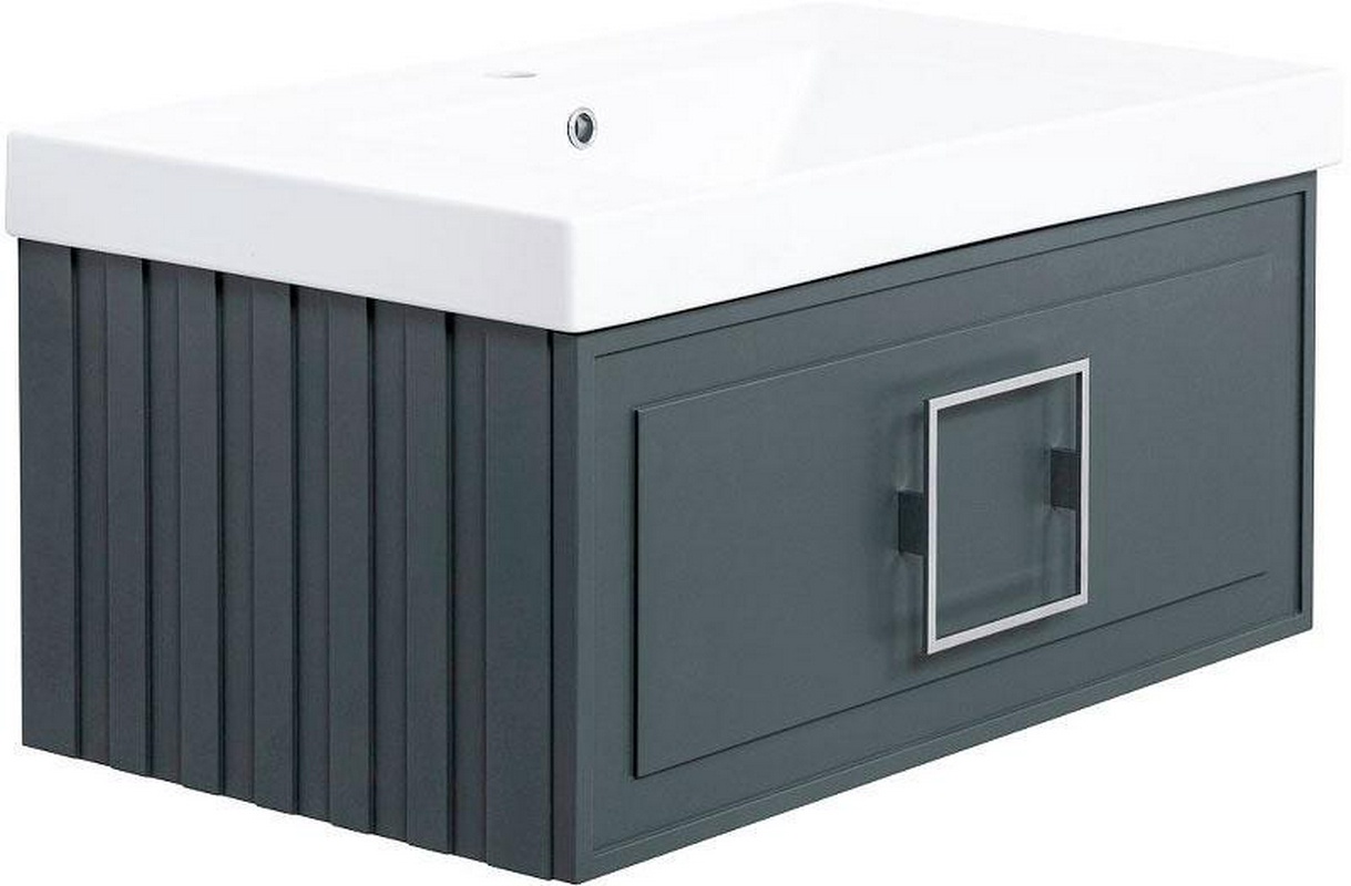 Тумба подвесная в комплекте с раковиной, 800хh622х480мм, 1 выдв.ящик, (цв. лава матовый), крепёж в компл., Renova Plan ZZ