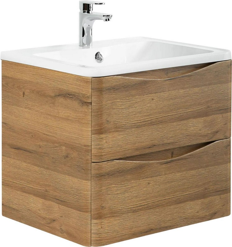 База под раковину подвесная с двумя выкатными ящиками, 596x455x500мм, без раковины, (цв.Rovere Rustico), Acqua ZZ