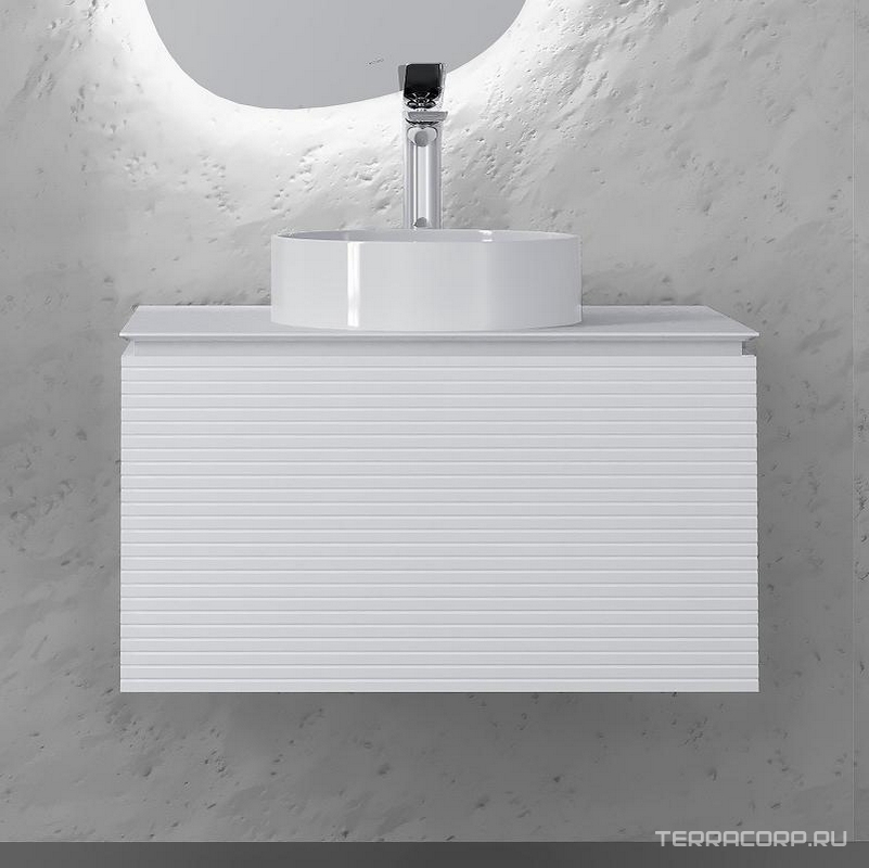 Тумба под раковину подвес.с выдвиж ящик., столешница керамогранит с отв.д/смесит,сифона, 80х51.6хh43.2см, без раковины, (цв.белый), Stone ZZ